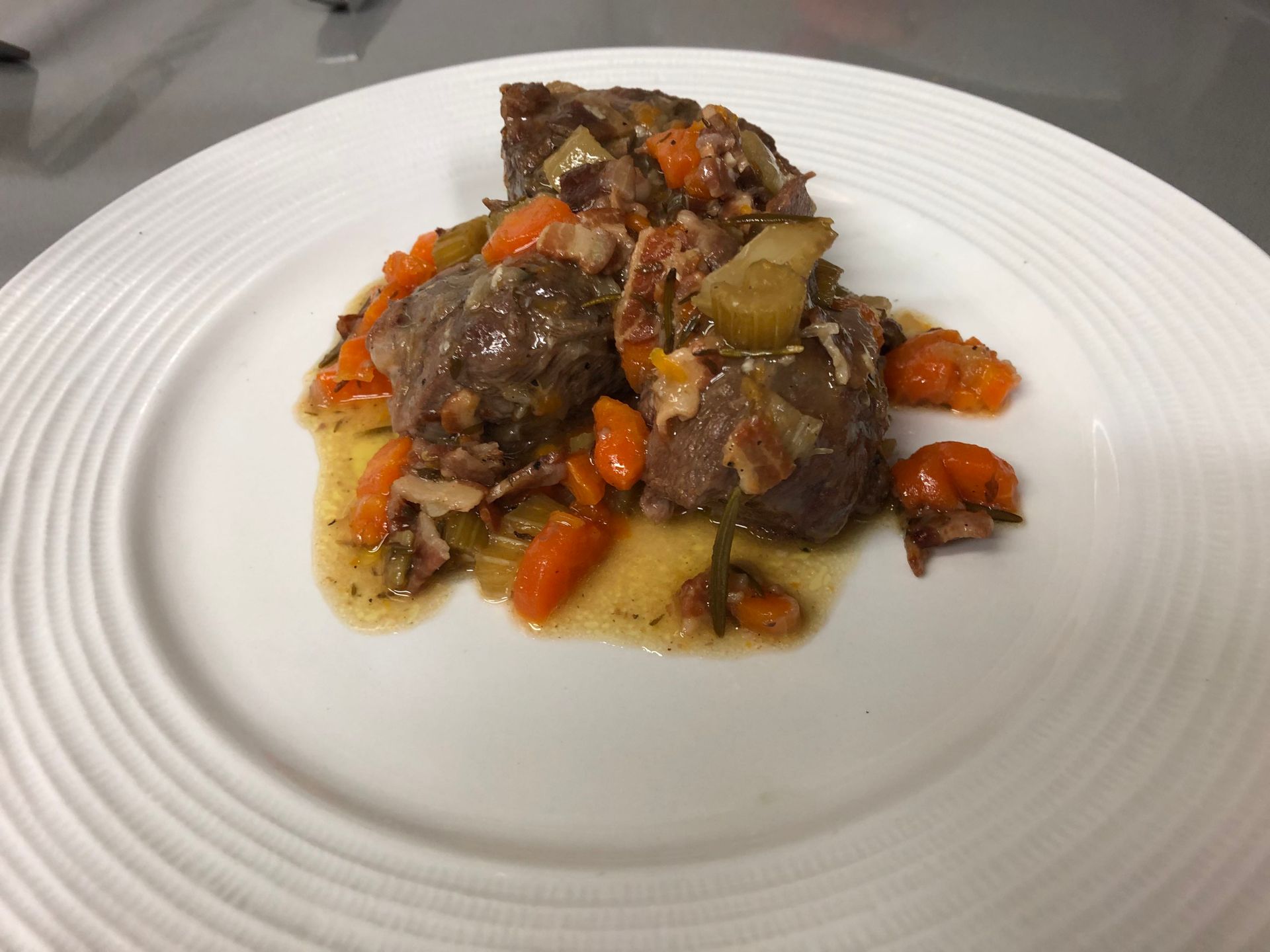 Guancia di maiale al coccio con guanciale, verdure ed erbe aromatiche